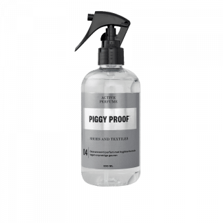 Wil je de vieze geurtjes uit je sneakers hebben? Daar heeft Piggy Proof een oplossing voor. Piggy Proof Active Perfume geeft schoenen en textiel een verfijnde geur door het parfum van iris, kardemom en vetiver. Door de vocht- en vuil afstotende nanotech formule wordt aanhechting van bacteriën voorkomen waardoor ongewenste geurtjes worden geremd.